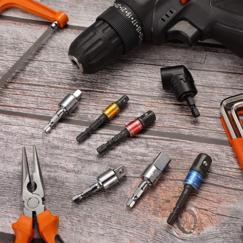 • What you will get: there are a total of 7 pieces of impact grade driver sockets adapter extension kit, including 1 piece 105° right angle drill driver, 3 pieces of hex shank power drill socket adapters including 1/4 inch, 3/8 inch and 1/2 inch, and 3 pieces of square nut hex shank driver drill bits including 1/4 inch, 3/8 inch and 1/2 inch, you can choose the appropriate size of tool to use
