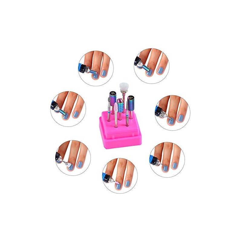 - Our nail file drill set is equipped with 6 different tools and 1 brush to meet your grinding needs in different nail regions. Different nail bits combinations for trimming and polishing your natural nails, especially for removing cuticles and sidewalls and dead skin.