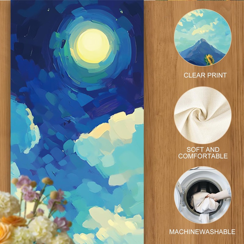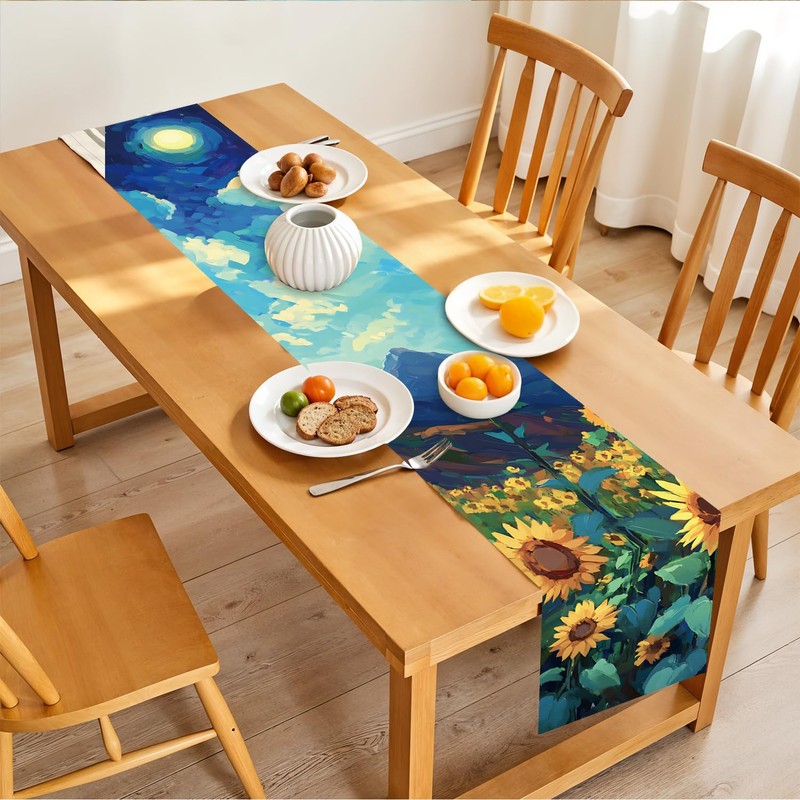 - Complete 7-Piece Table Set – Includes 1 elegant table runner and 6 matching placemats featuring a stunning sunflower and moonlit night theme to elevate your dining space.