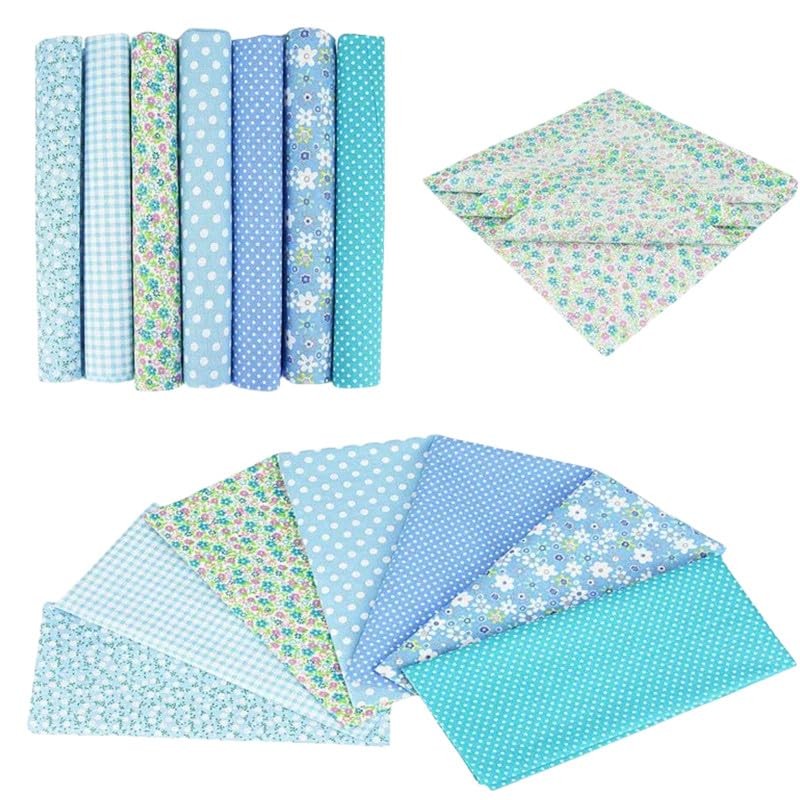 7 Pieces Blue Floral Fabric Bundles for Sewing,25cm Square Cotton Fabric for Quilting