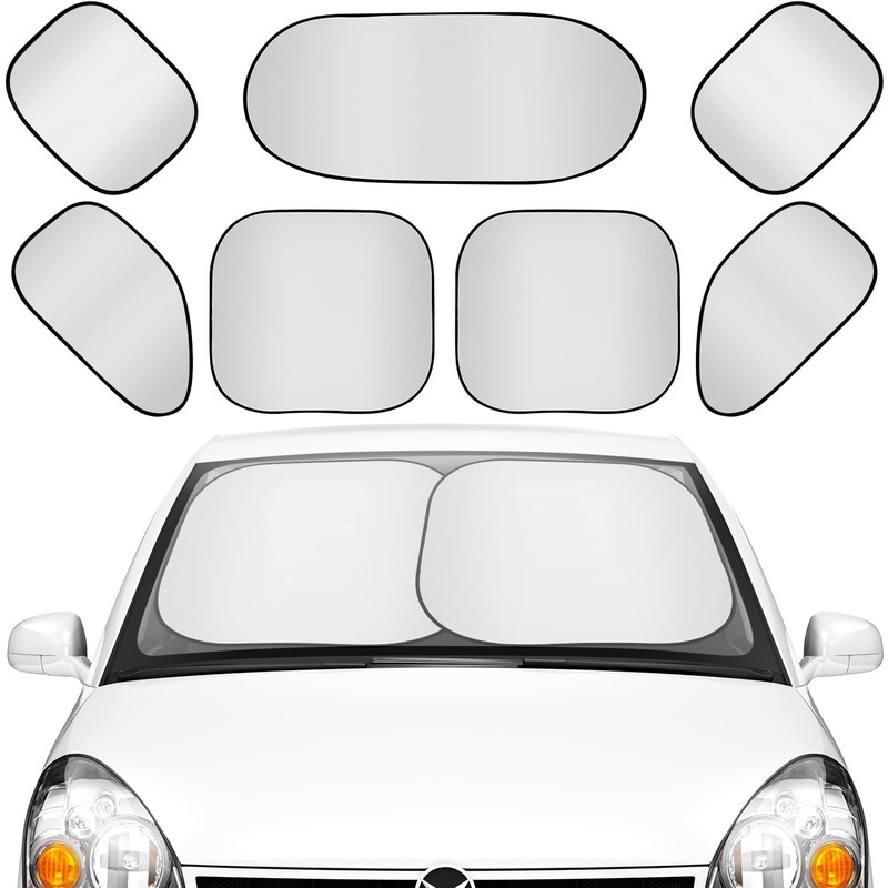 7 Pieces Car Sun Shade Medium Windshield Sunshade Set Includes 3 Front Rear & 4 Side Window Uv Rays Sun Visor Protector with 12 Suckers for Automotive Vehicle
