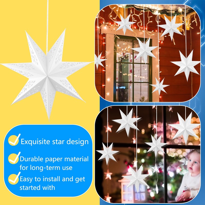 - Package include: you will receive 7 pieces Christmas white star paper lanterns in different sizes, enough quantity and sizes for you, can satisfy your decoration needs and also good gifts for your kids, a perfect addition to any home or office