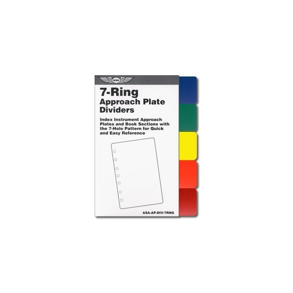 Save time looking through the 7-ring-style approach plate book. Before each trip, use these dividers to tab the approaches you'll be executing. For quick reference of various sections of the 7-ring-style approach plate charts, these five distinctly-colored dividers extend out beyond the side of the charts. Does not have holes, the product has tabs used to slide between the rings without opening the binder rings.