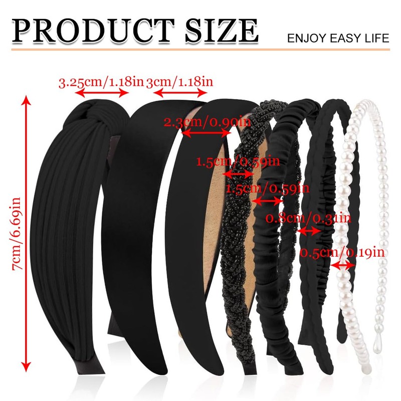 - Lieferumfang: Ein Set mit 7 Unisex-Stirnbändern in verschiedenen Stilen (einfarbig, geknotet, gefüllt, mit Perlen) im klassischen Retro-Stil.