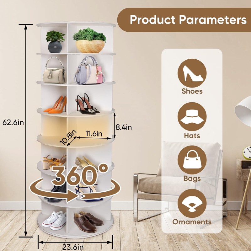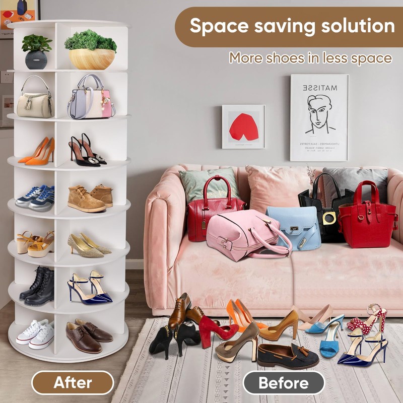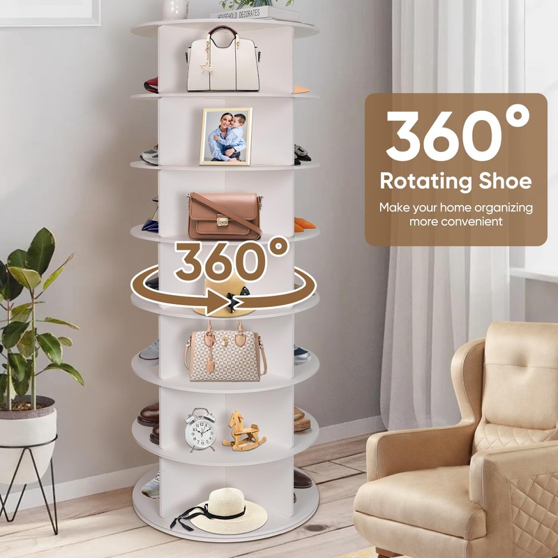 - ๐ฉ๐ฒ๐ฟ๐๐ฎ๐๐ถ๐น๐ฒ ๐ฆ๐ต๐ผ๐ฒ ๐ข๐ฟ๐ด๐ฎ๐ป๐ถ๐๐ฒ๐ฟ: This Versatile white 7-Layer Storage rotating shoe cabinet not only organizes shoes neatly, but also doubles as a multipurpose storage or display shelf for a wide range of daily items, including CDs, photo albums, plants, towels, small home appliances, and moreโit's your all-in-one storage solution