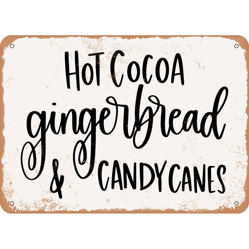 7 x 10 METAL SIGN - Hot Cocoa Gingerbread and Candy Canes - Vintage Rusty Look Sign