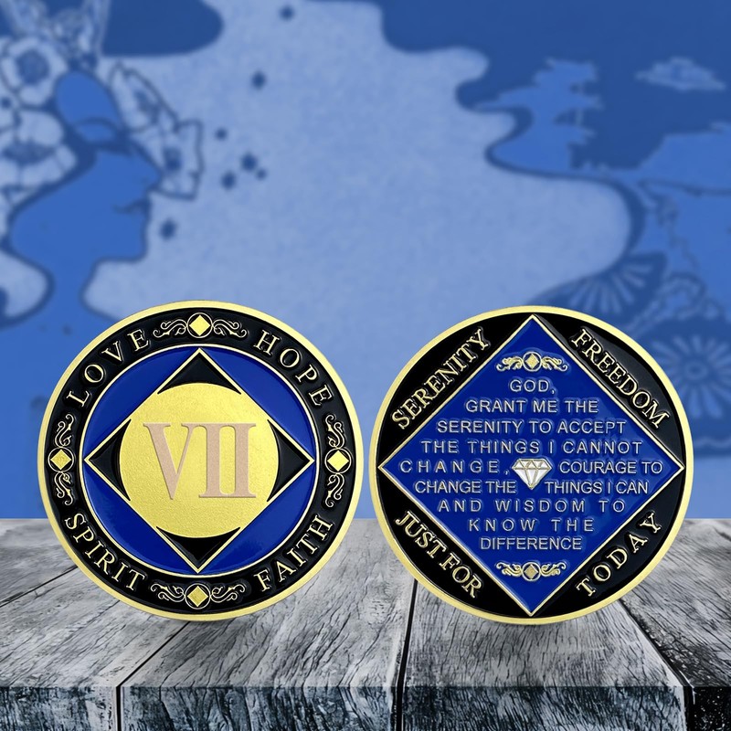 7 Year NA Medallion Gold Plated Narcotics Anonymous Coins Birthday Anniversary Token Recovery Gift