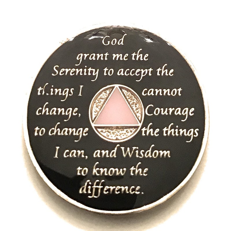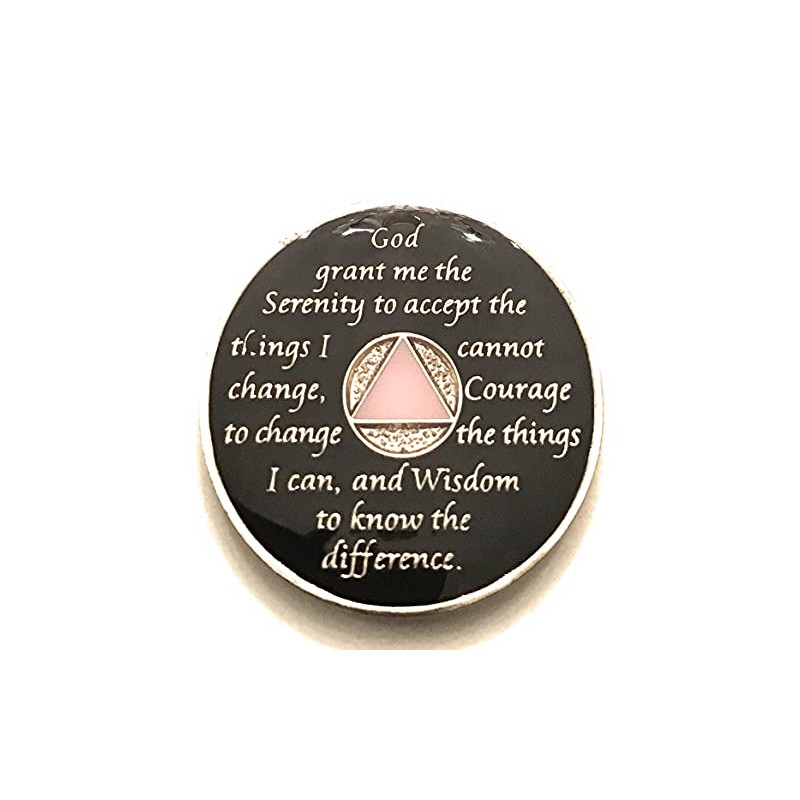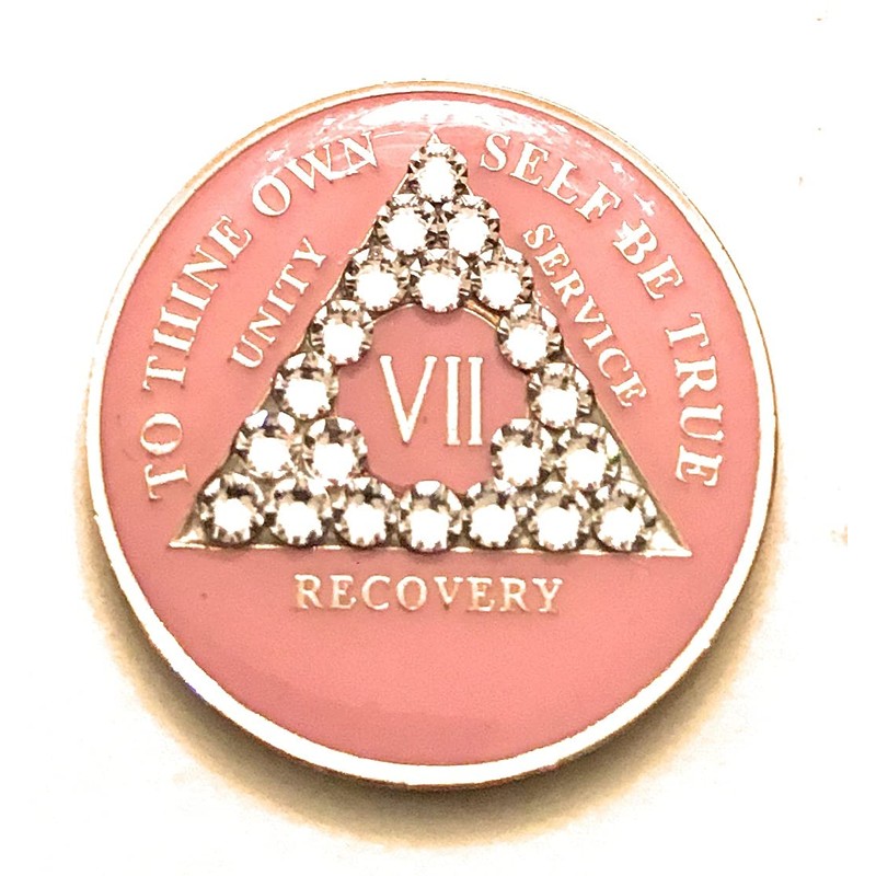 7 Year Pink AA Medallion - Alcoholics Anonymous Bling Chip with White Crystals- Sobriety Chip, Token