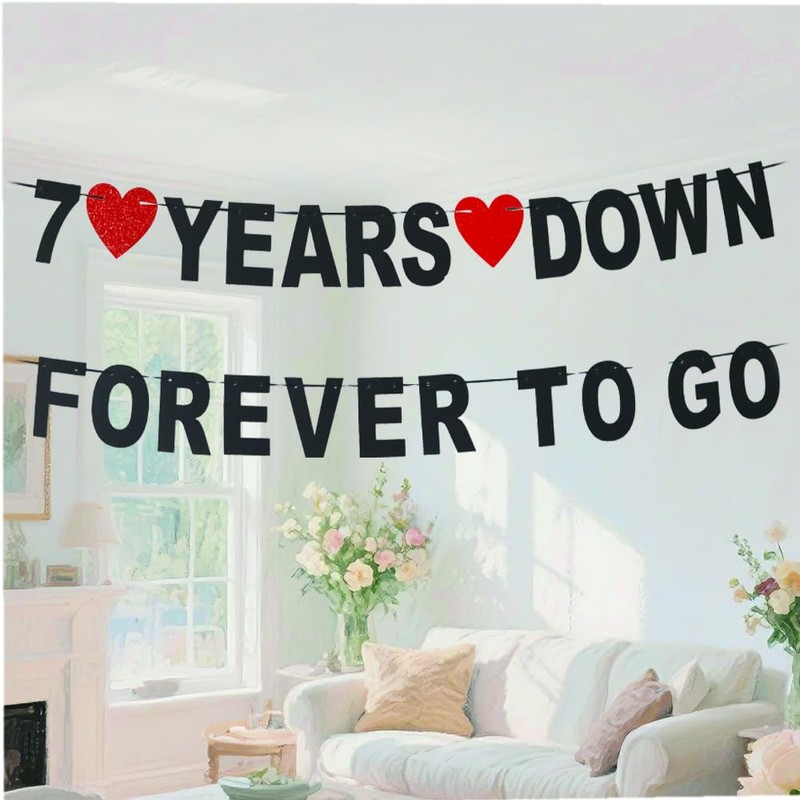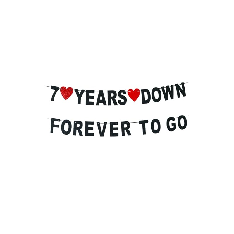 7 Years Down Forever To Go banner-cheers to 7 Years Anniversary Sign, Happy 7th Marriage Anniversary Party Decoration