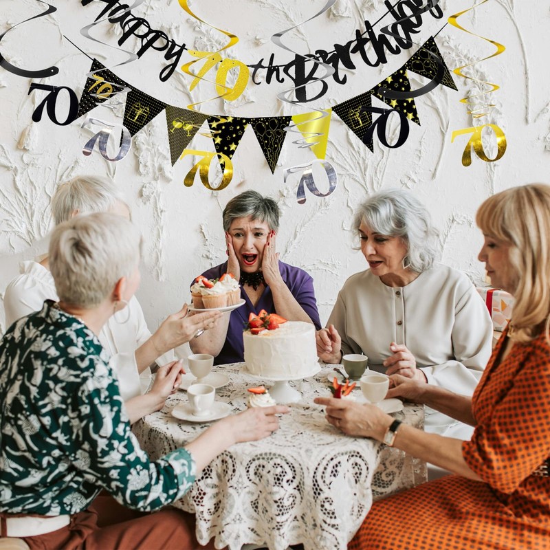 - ✅【Einfach zu Verwenden】Unsere 70 Geburtstag Frauen Männer Geschenk werden mit passenden Kunststoffhaken und Bändern geliefert. Sie können Banner und Spiralen an Krippen, Wänden, Fenstern, Bäumen und Zelten aufhängen, um eine fröhliche Atmosphäre zu schaffen. Oder kombinieren Sie sie mit weiterem Partyzubehör als schönen Fotohintergrund, sie werden Ihnen gute Erinnerungen bescheren.