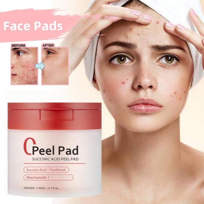 - 70 PADS RED SUCC/INIC ACID PANTHE/NOL FACE EXFOLIATOR PADS:This exfoliating toner pads for acne prone skin can meet our various skin care needs.The zero pore pads can handle both cleansing and care together,the deep clean pores makes skin care more efficient and convenient.This face scrub exfoliator can help us improve skin texture,the korean skincare deeply cleans pores,the face scrub removes facial oil,stains and so on,the makeup wipes make you more confident