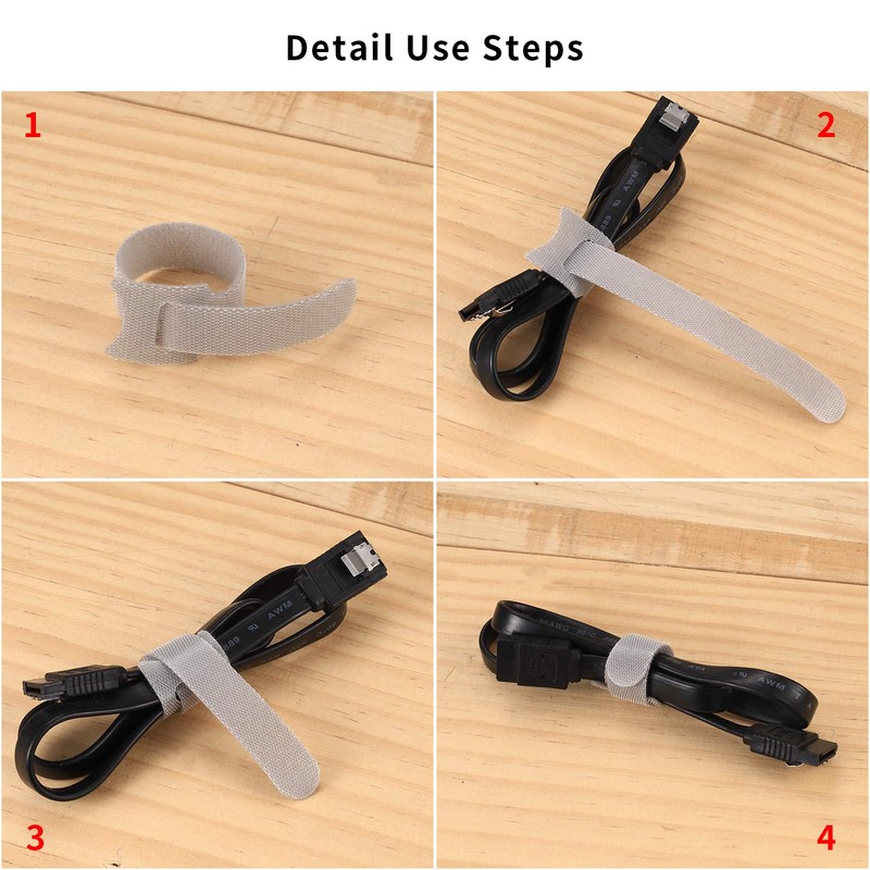 - 【Easy to Use】These pre-cut cable management ties stay firmly in place with an easy to use slotted head. Just simply insert the rounded end through the hole and pull the strap tight. The hook and loop will firmly wraps onto itself for a secure hold.