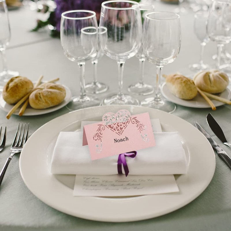 - 【Material】Our heart shaped hollow out pink place cards are made of high-quality paper materials,soft and durable,not easy to wear,easy to use,and can be used for a long time.