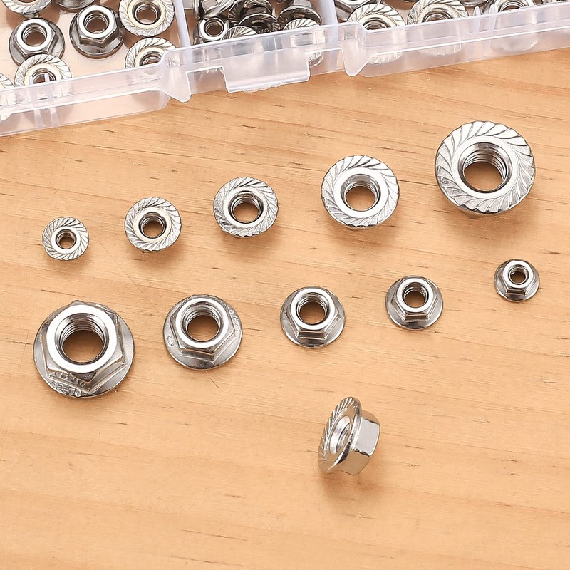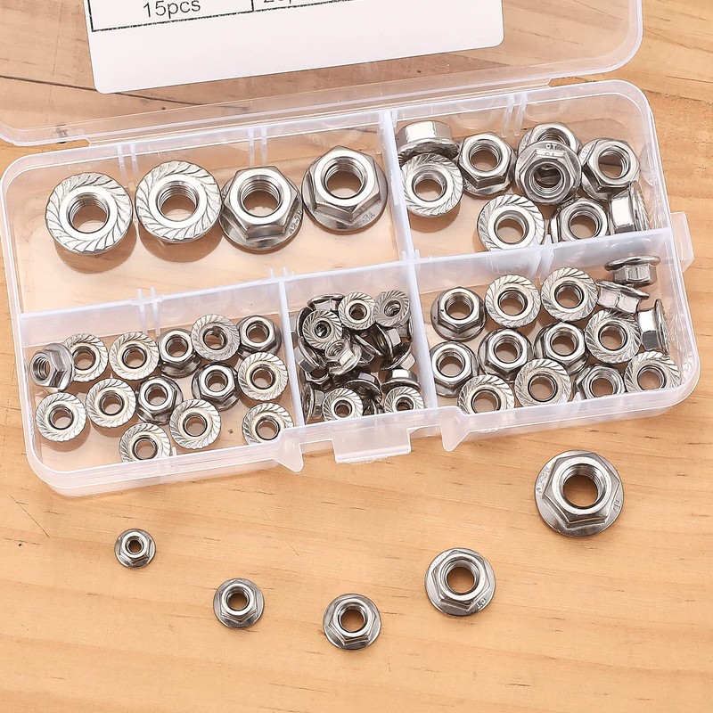 - Simple Storage: All flange nuts with locking teeth are stored in a transparent and sturdy storage box with compartments. The flange nuts are stored separately, well-organized, easy to transport and find. There is no confusion during transportation, and it is convenient to use.