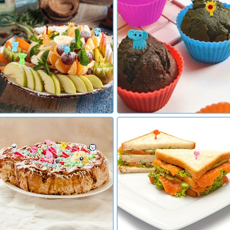 - MULTIPURPOSE: You can apply these reusable silicone baking cups to make cupcakes, muffins, bread, chocolate desserts to enrich your kid's bento.These bento picks are ideal supplies for children to have lunch or eat fruits, making the food more attractive, cute appearances will give them a good appetite.