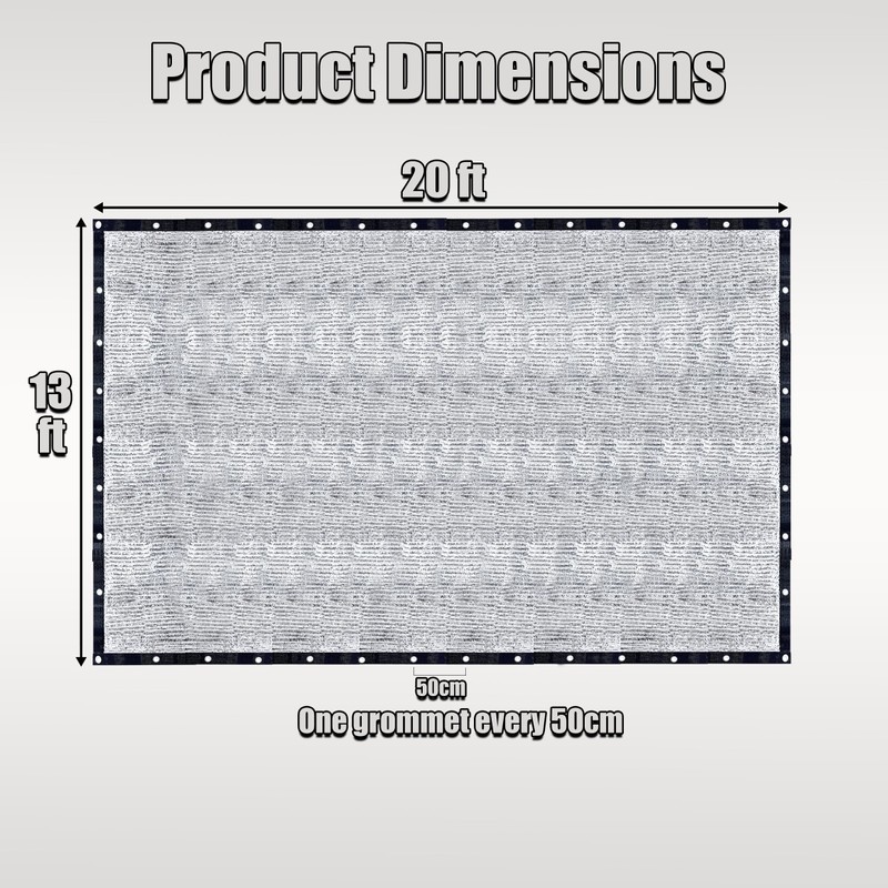 70% Reflective Aluminum Shade Cloth - 13x20 Ft Durable Mesh with Grommets Shade Cloth for Greenhouse,Car Shade, Plant Cover, Patio, Pool Shade Pet Enclosure Aluminet Shade Net