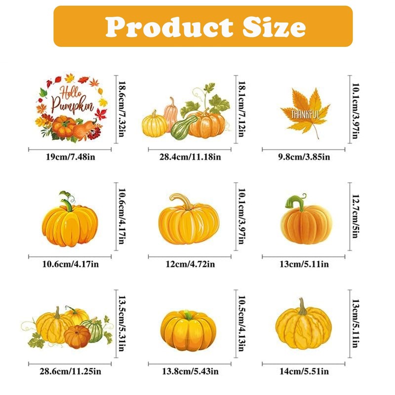 • Multiple Fall/Thanksgiving Designs: 9 sheets fall window clings are all in different designs, each sheet measures 20 x 30cm / 7.8 x 11.8inch, printed with autumn leaves and pumpkin pattern, , are well match the holiday atmosphere, unique and delicate.