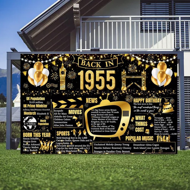 - 【Back in 1955 Theme】Our "Back in 1955 theme" banner is meticulously designed with captivating birthday elements and clear historical text with exquisite patterns, in bright black and gold, with eye-catching fonts, giving you nice visual enjoyment.