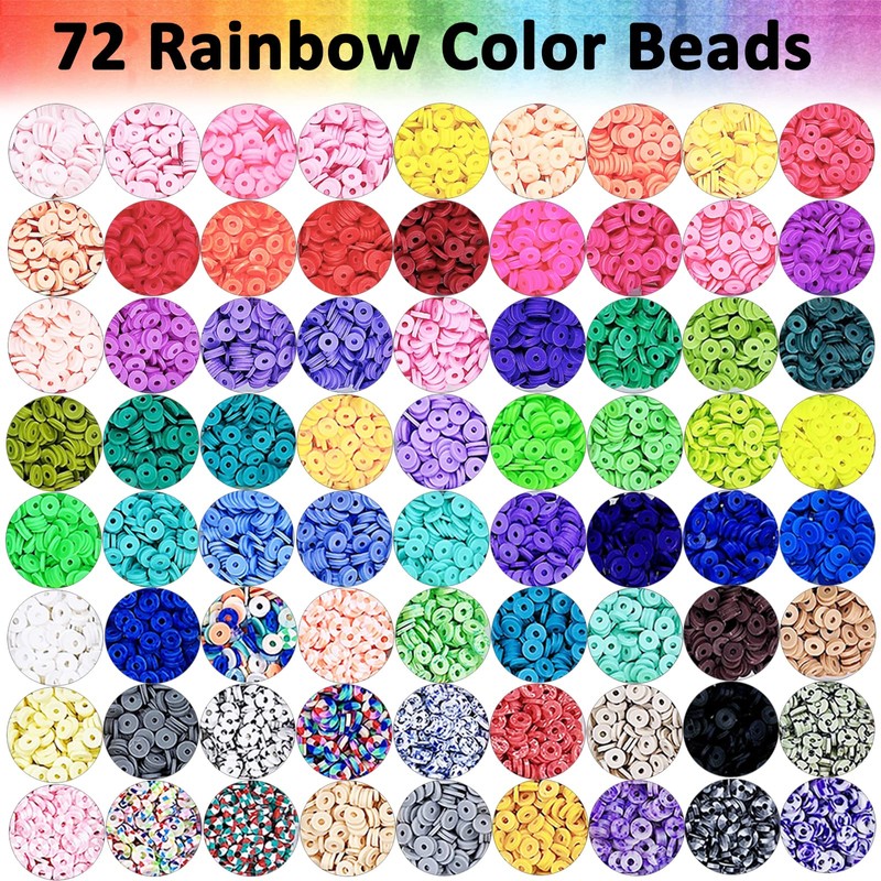 - 72 Colors Clay Beads Set This flat clay bead set with black stone is available in 72 rich colors, each in sufficient quantity. The clay bead set contains a variety of accessories and pendants that allow you to create jewellery in different styles.