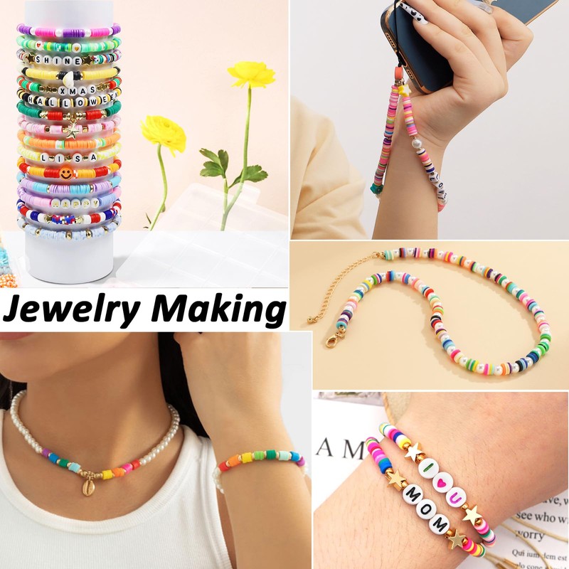 - Wide Applications The polymer clay bead jewelry kit is suitable for making a variety of beautiful bracelets, necklaces, anklets, hip chains, eyeglass chains, mobile phone chains, key chains, rings, etc. The clay bead bracelet set is also the perfect gift for girls, women, mothers and girlfriends.