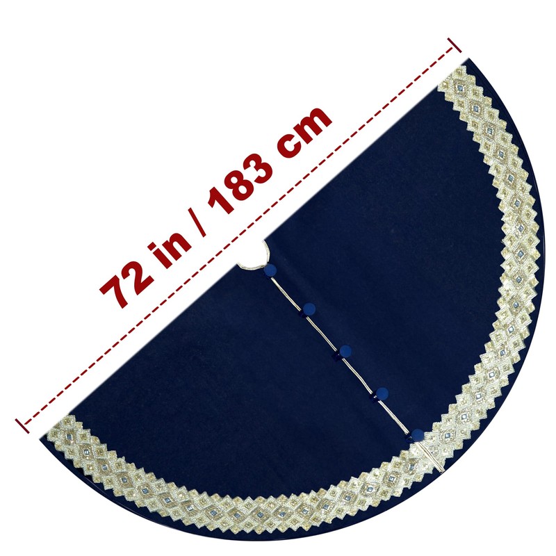 72-Inch Venetian Gilded Christmas Tree Skirt in Velvet with Gold Jeweled Band, Royal Blue