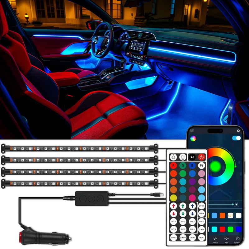 - Multi-coloured and DIY music sync: over 16 million colours. LED lights for car have a built-in microphone that helps to synchronize the car interior lighting with any type of music, then the interior lighting changes its colour according to the music rhythm. Make your car stand out with creative freedom in unique style.