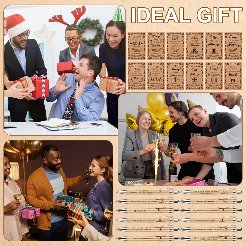 72 Pcs Christian Gift Bible Verse Pen Bamboo Religious Inspirational Scripture Notebook with Organza Bag for Men Women Prayer Journal Office School Church Supplies Christmas Easter