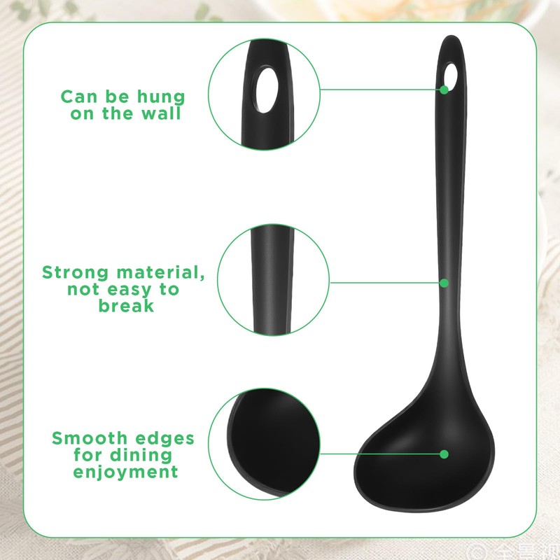 - **Optimal Size & Heat Resistance: Designed for practicality with a large bowl and long 9-inch handle for safe, comfortable reach into deep pots or chafing dishes. Made from heat-resistant plastic, these soup spoons black safely serve hot contents, ideal for soup cooking and steaming dishes without bending