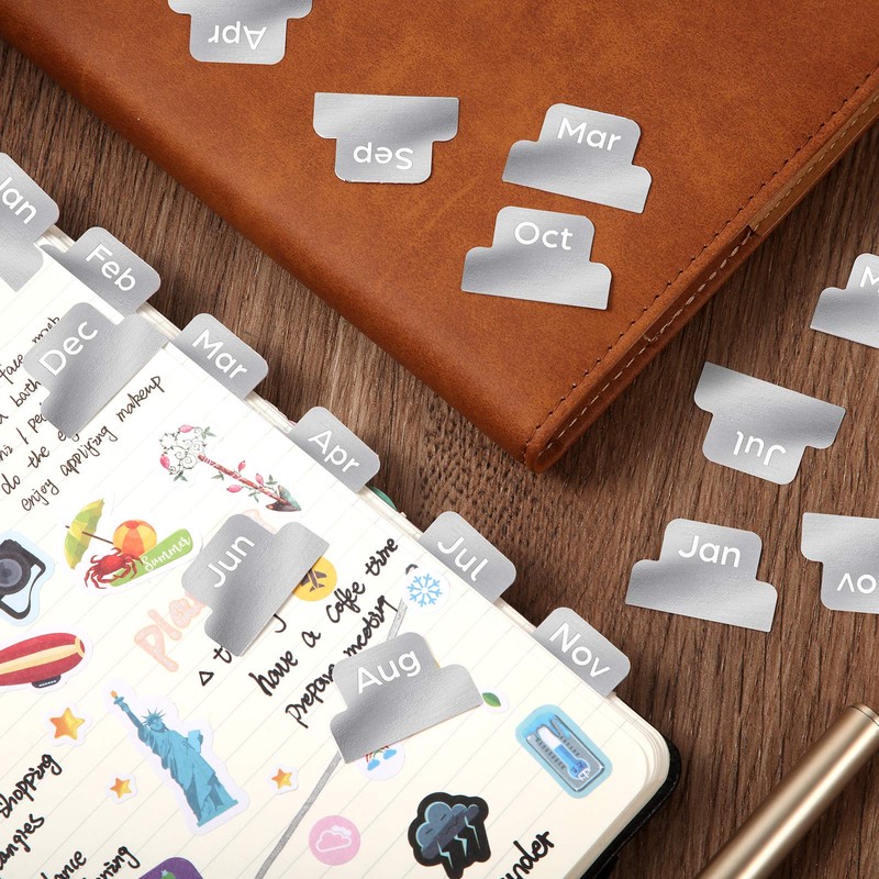 - Apply to: sticky month index tabs can be applied to diary, notebooks, schedules, files, and even food storage, etc.; They can also be applied as monthly marks for kitchen, office and study to help you plan important things or deal with some items