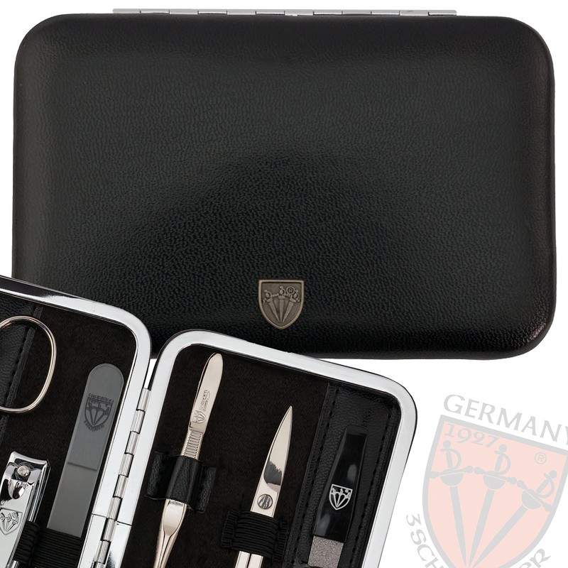 - MANIKÜRESET „Genova“ von Drei Schwerter mit qualitativ hochwertigen Instrumenten für die Handpflege und Fußpflege. Die ausgezeichnete Verarbeitung und ein Höchstmaß an Präzision macht dieses Maniküretui zu einem langlebigen Begleiter für Zuhause und Unterwegs. Das Nagelpflegeset im exklusiven Look wird geliefert in einer attraktiven und stabilen Geschenkbox.