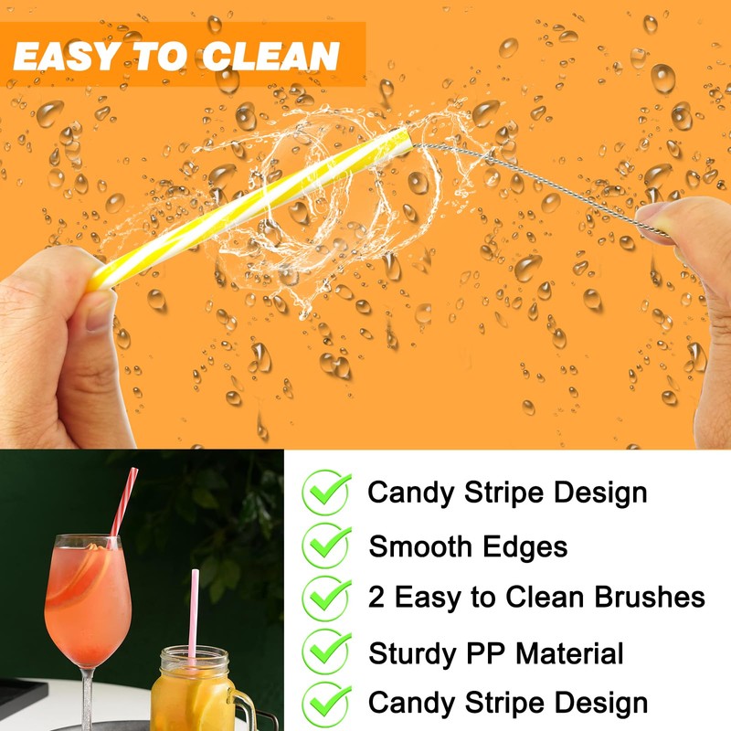 - 【Quick Cleaning】Biodegradable Milkshake Straws also comes with 2 brushes, perfect for long-term use. You can use the cleaning brushes for cleaning or put Non Disposable Candy-Striped Drinking Straws in the dishwasher for easy cleaning and multiple reuse.