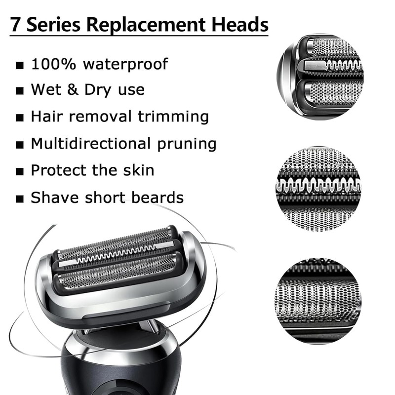 - COMFORTABLE SHAVING - Super Lift & Cut Action. For braun s7 360 replacement head, no-death-angle design allows for cleaner removal of your beard. At the same time, the sharp blades can cut through your beard quickly and you don't have to worry about the blades pulling your beard.for braun series 7 73s replacement head is perfectly designed to protect your skin from scratching.