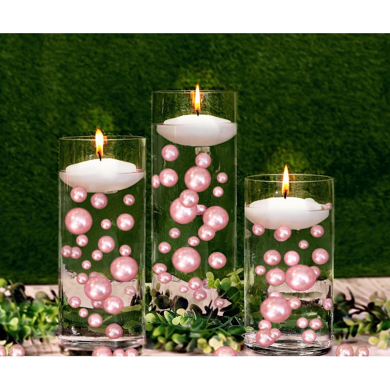 - Fills 1 gallon of the 75 Floating Blush Light Pink Pearls and The Most Transparent Water Gels for the floating effect for your vases. No hole Pearls in sizes: 6 jumbo (30mm/1.25"), 14 large (20mm/0.75"), and 55 medium (14mm/0.5"). Plus our exclusive Transparent Gels Floating Kit contains: 1 Packet of crystal clear Gels and a measured Prep & Storage Bag.