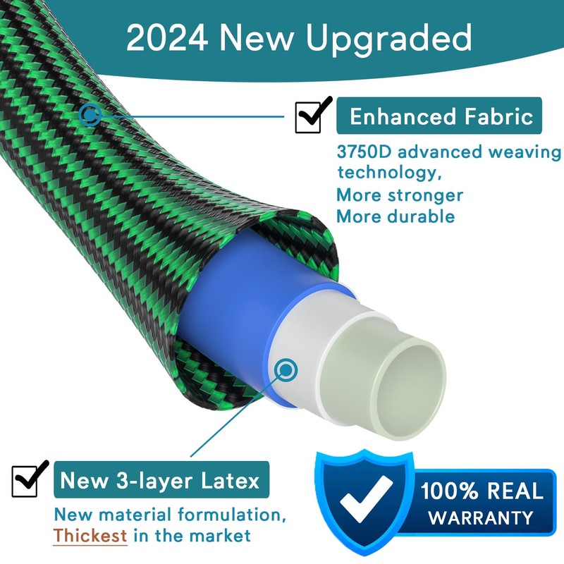 This garden hose is a 2024 upgraded expandable hose which could magically expand to max 75ft when the water source is on. It is extremely lightweight and flexible, never kink, never tangle.
