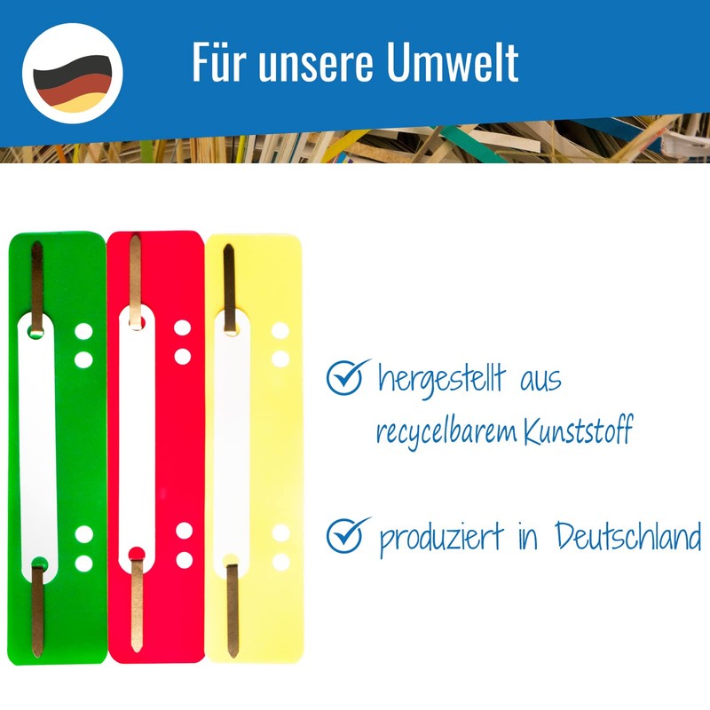 75 Plastic Filing Strips 3 Bundles of 25 Pieces Made in Germany (Green, Yello...