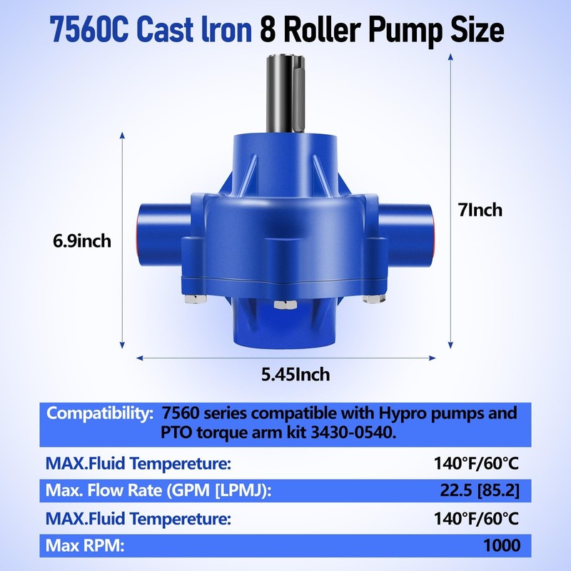 - Product Compatibility: Our 7560C cast iron 8-roller pump is compatible not only with the Hypro 7560C cast iron 8-roller pump but also with a variety of agricultural applications.