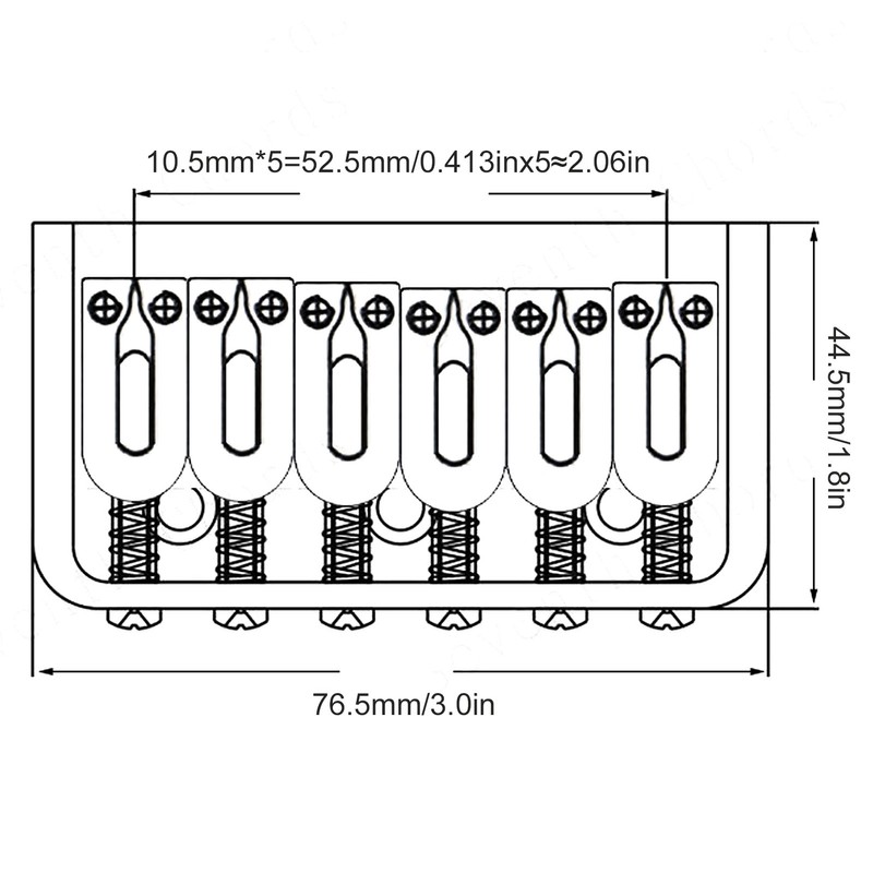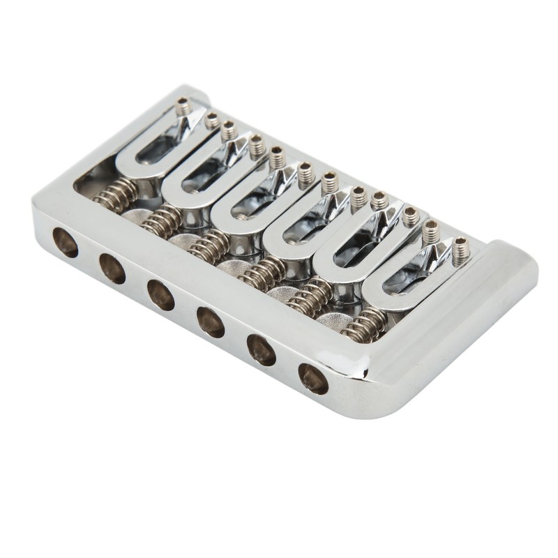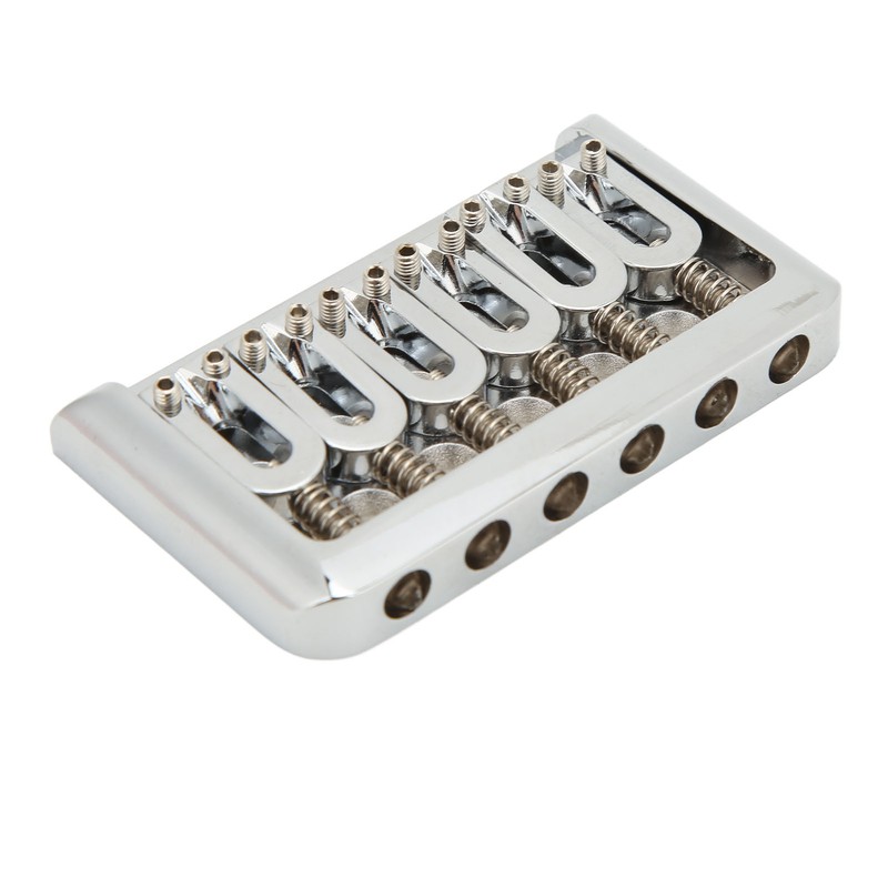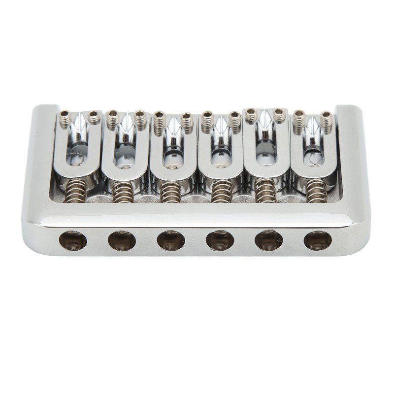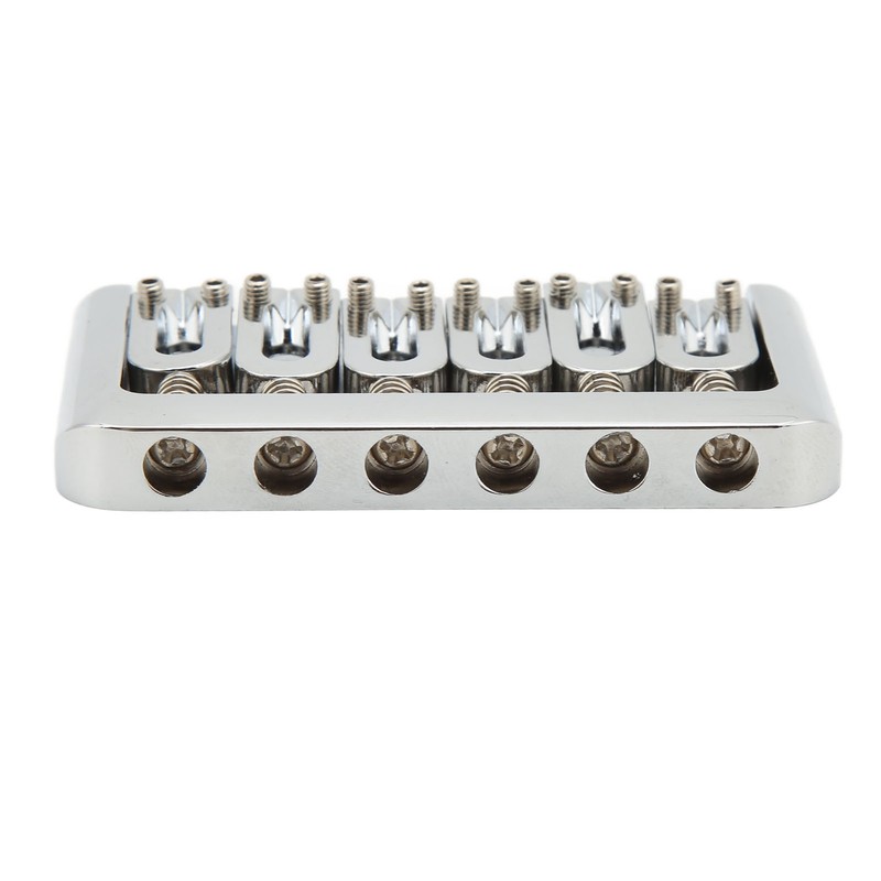 1、String Way: Adopts bottom stringing way which is easy to operate, and do not support string from back. 2、Metal Material: Made of high quality metal with high strength, making it strong for heavy duty work and preventing deformation. 3、Safe to Use: The saddle bridge has a glossy surface, and also light in weight, and will not scratch your fingers or guitar during use. 4、Easy to Install: The guitar bridge fixed saddle will come with a 5 screws and a wrench, making the replacement process more convenient. 5、Universal Size: This fixed guitar bridge has standard sizes and can directly replace the old or broken bridge.