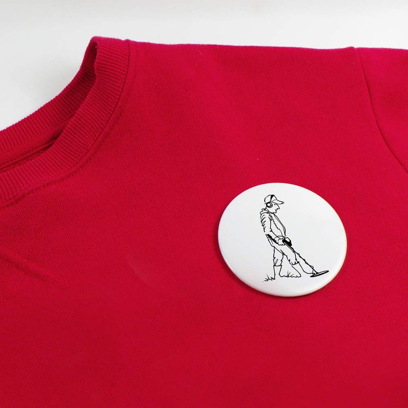 77mm 'Metal Detector Man' Large Button Pin Badge (BB00058882)