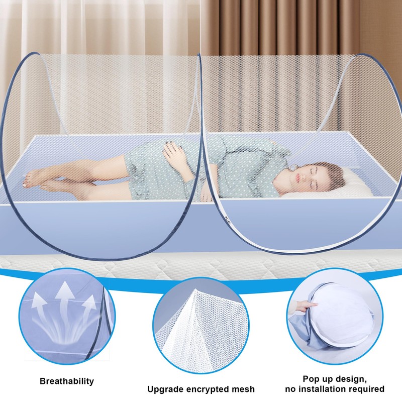 • CONVENIENT DESIGN: The portable mosquito net is designed with double zippers on the side for easy access and no need to close, which can better ensure the enjoyment of a good and comfortable sleeping time