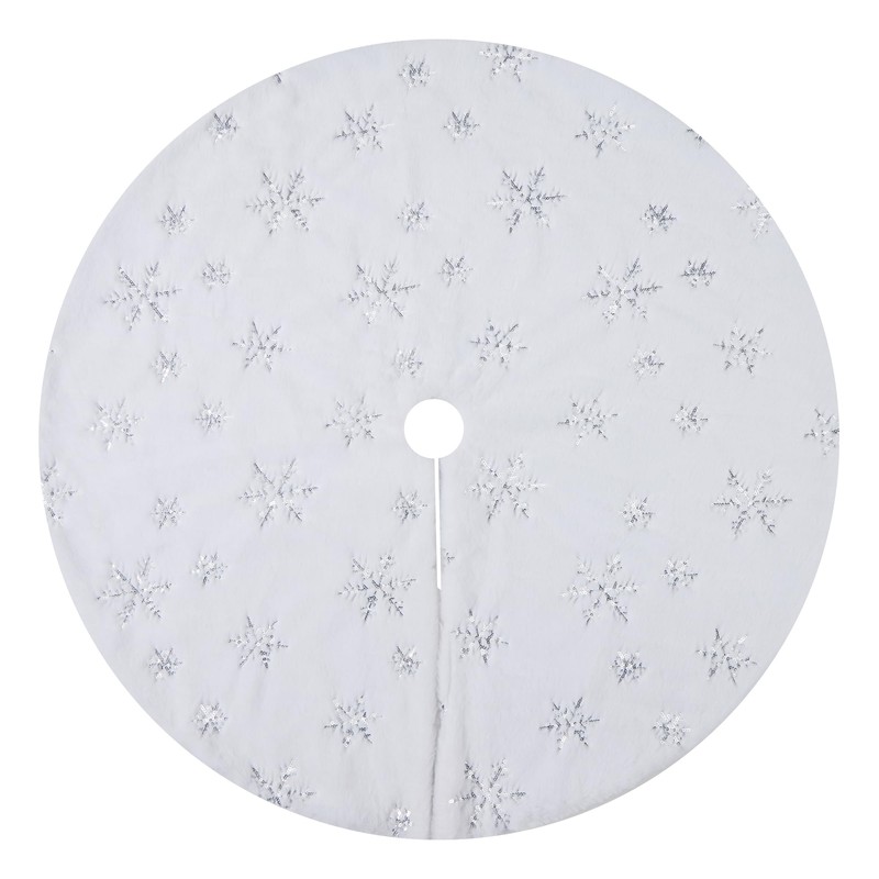 78 cm Christmas Tree Skirt White Christmas Tree Skirt Faux Fur Plush Round with Silver Snowflakes Christmas Tree Skirts for Merry Christmas Tree Decoration