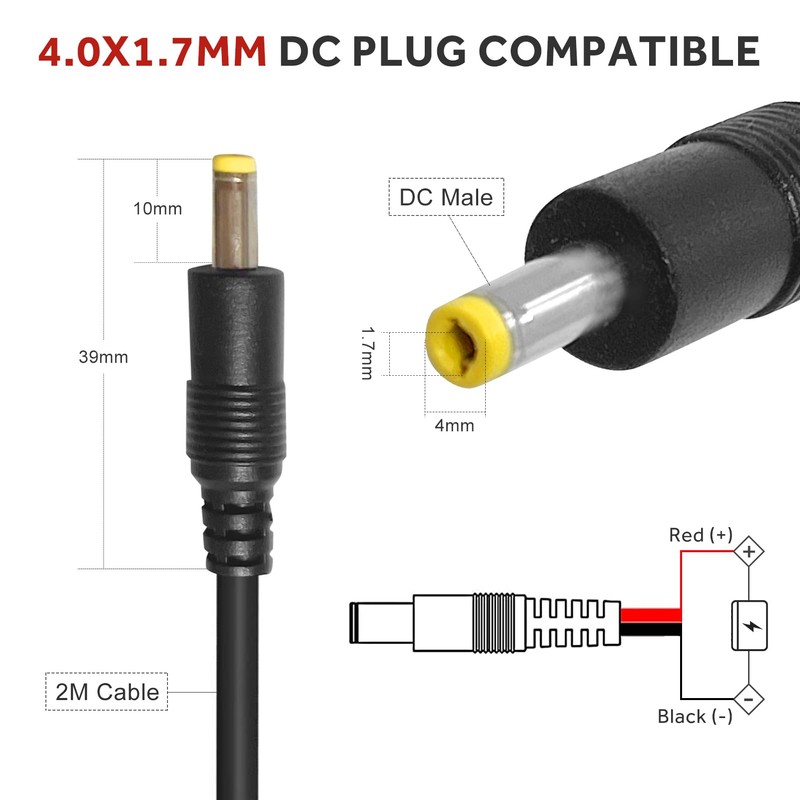 • The DC plug comes with an external diameter of 4.0mm and an internal diameter of 1.7mm.