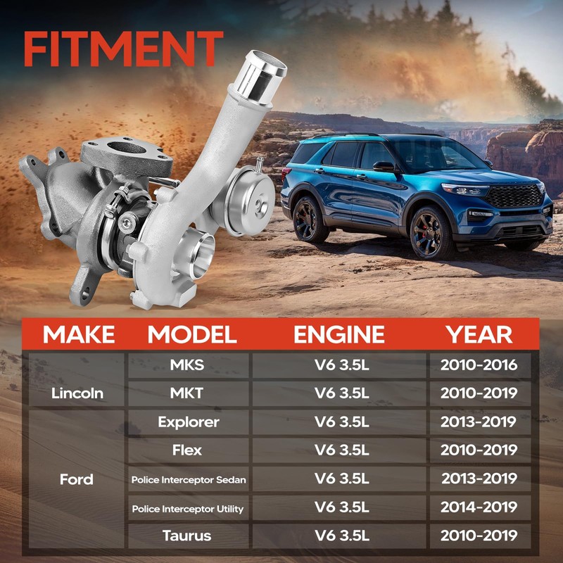 - [Vehicle Fitment]: Compatible with Ford Explorer/Police Interceptor Sedan 2013-2019 V6 3.5L // Flex/Taurus 2010-2019 V6 3.5L // Police Interceptor Utility 2014-2019 V6 3.5L // Compatible with Lincoln MKS 2010-2016 V6 3.5L // MKT 2010-2019 V6 3.5L---Right Side, EcoBoost Eng. Turbo Model: MGT1549SL