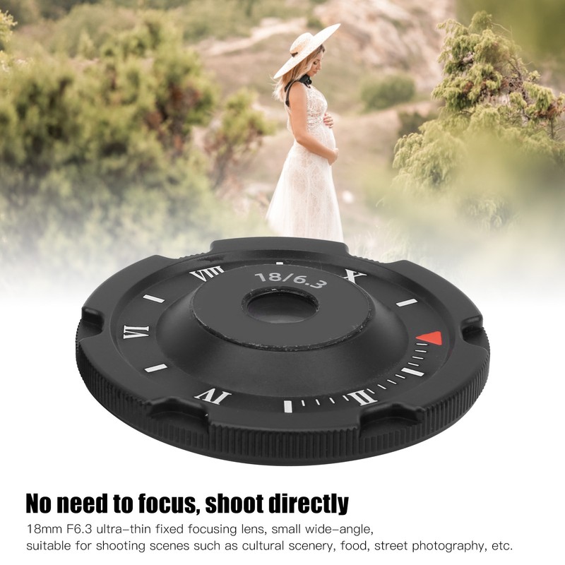 1、18mm F6.3 ultra‑thin fixed focusing lens, small wide‑angle, suitable for shooting scenes such as cultural scenery, food, street photography, etc. 2、Small size, compact, you can put it in your pocket. 3、Constant F6.3 aperture without manual focusing, the fastest focusing is without focusing. 4、Fine workmanship, fit your camera well, help you take better images. 5、4 different types for you to choose, meet your different needs.