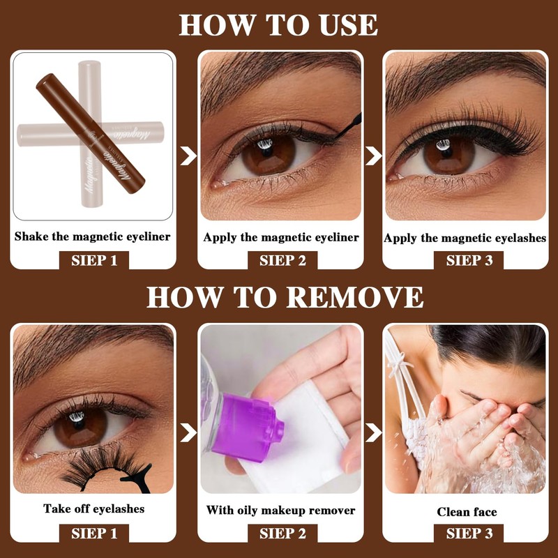 - 【SPECIAL UPGRADED MAGENTIC EYELINER】 7C SevenCrown Magnetic eyeliner contains ultra-fine magnetic particles that allow the High-Strength magnets in the false eyelashes to adhere strongly. This means you don’t have to worry about the embarrassment of falling eyelashes in the soup during a date.