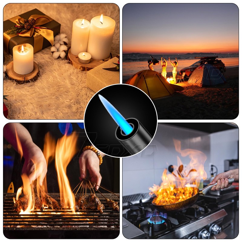 • 【ENCENDEDOR DE BUTANO MULTIUSOS】 Diseño delgado y liviano, se siente bien en la mano, fácil de guardar en el bolsillo, perfecto para sus actividades en interiores y exteriores. Adecuado para puros, velas, barbacoas, camping, uso al aire libre, soldadura/soldadura de bricolaje, etc. También se puede utilizar para chimeneas ligeras, estufas de gas, hornos, estufas, velas de té, etc.