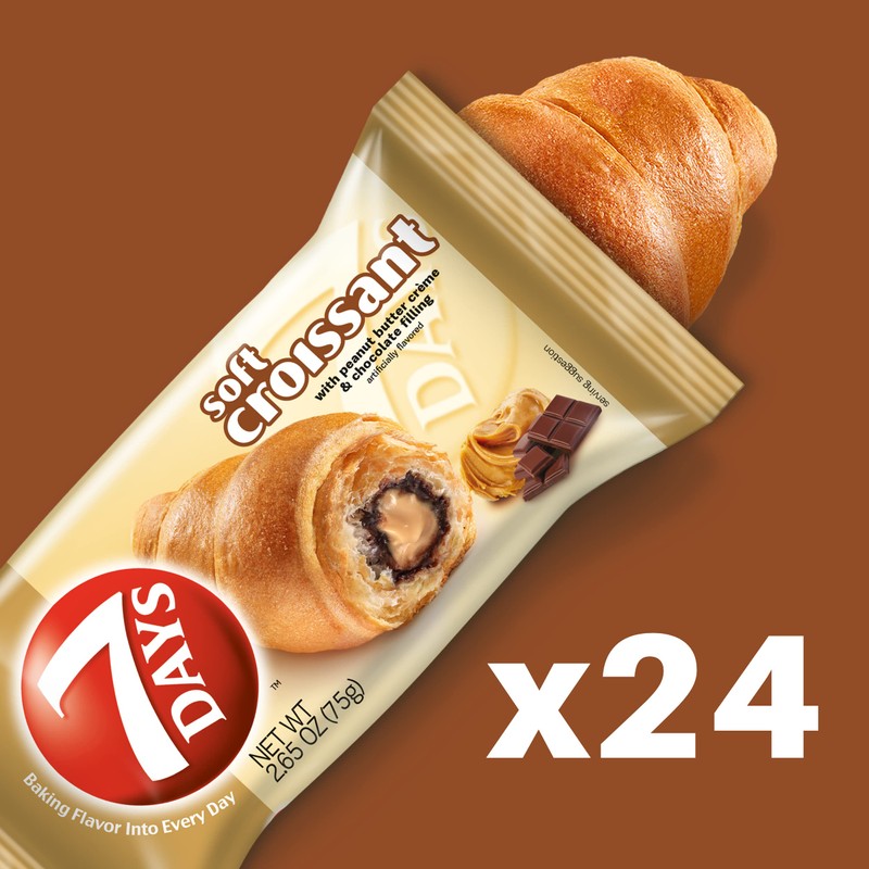 7Days Soft Croissant, Peanut Butter Chocolate Filling, Perfect Breakfast Pastry or Snack, Non-GMO (Pack of 24)