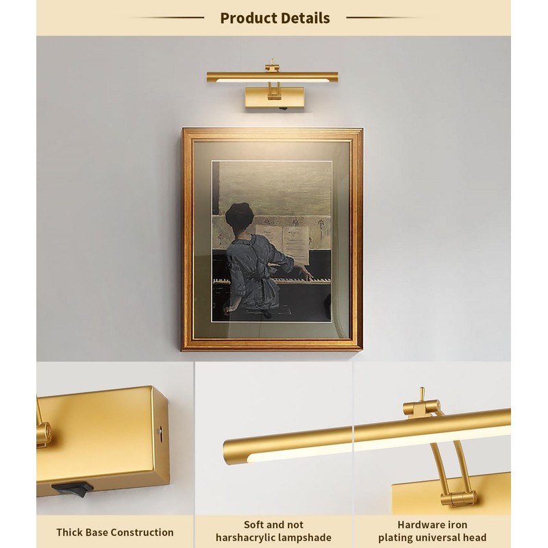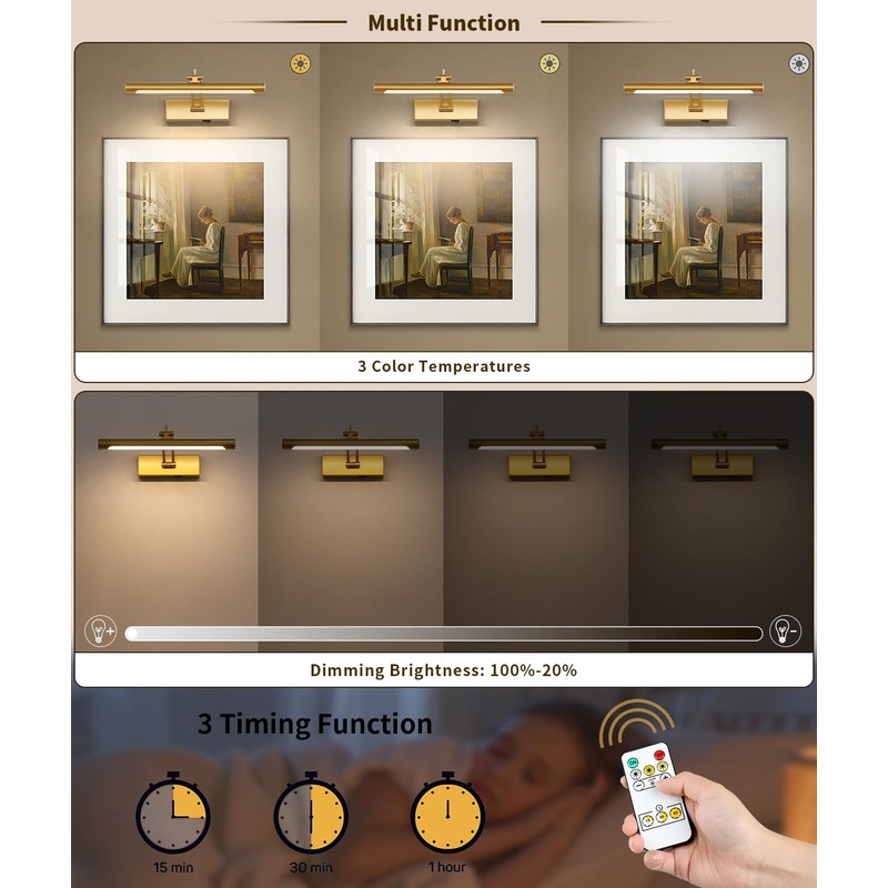 - 【3CCT & DIMMABLE FUNCTION】:The art lights for paintings battery operated wall light with 3CCT ,adjust to your favorite brightness and light color to add more beauty to your home.