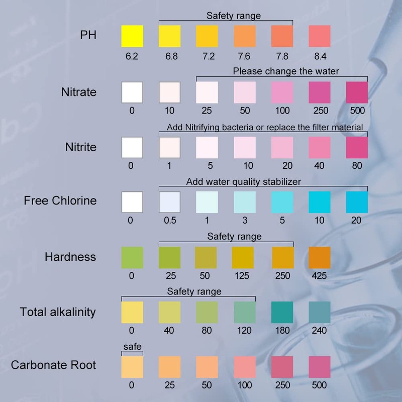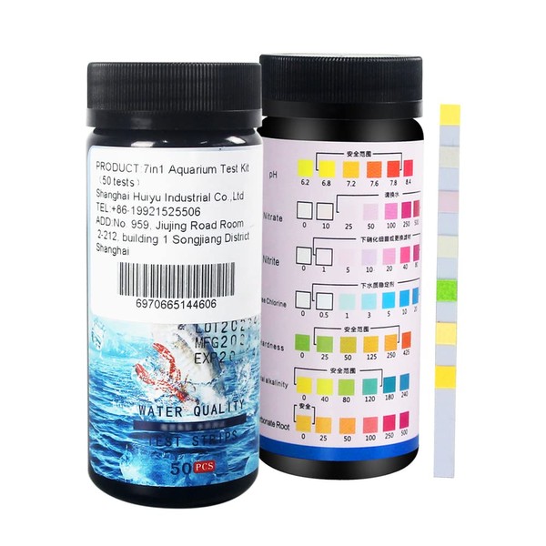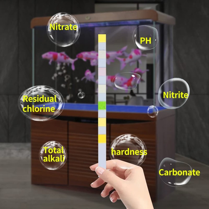 7in1 Aquarium Test Kit for Freshwater Aquarium Fast & Accurate Water Quality Testing Strips for Aquariums & Ponds | Monitors pH, Alkalinity, Nitrite, Nitrate, Chlorine, Carbonate, Hardness(50 Tests)