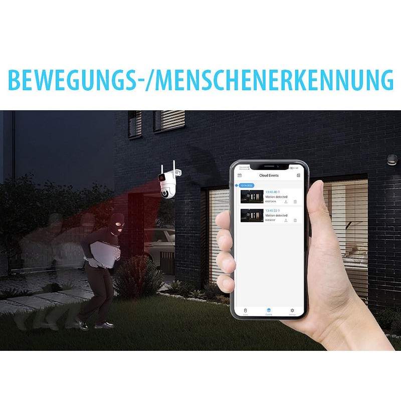Recording start with motion and sound detection: Whether a stranger sneaks through the garden or clinking glass breaks through the silence, your camera starts recording immediately. In addition, you will receive a notification on your mobile device. So you can get a picture of the situation in real time. When person detection is enabled, recording only starts when your camera sees a person. Animals or branches rocking in the wind ignores them.