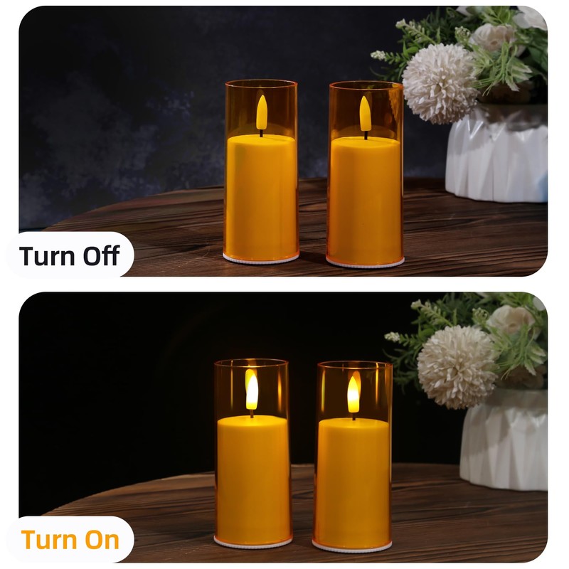 - Realistic wick flameless pillar candles: We use 3D black wick design that allows for a more realistic flickering effect. Through the clear acrylic shell, you can see the shadow of the wick just like real flame, recreates the soulful poetry of a flickering flame